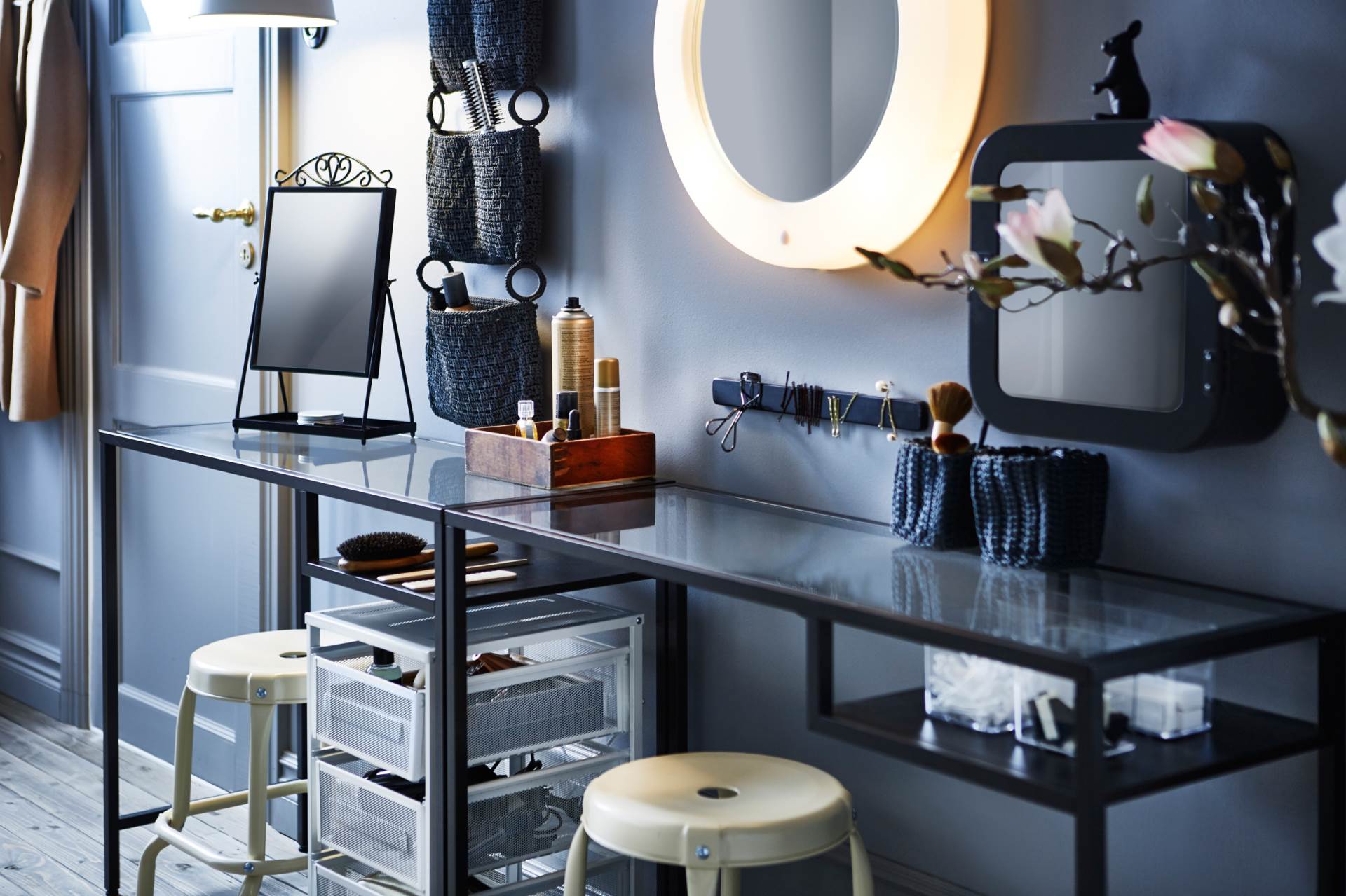 Uzorci na tekstilu, detaljima, uokvirenim printovima ili, primjerice, tapetama također mogu razigrati monokromatsku jednostavnost: moderni su crteži stiliziranih elemenata iz prirode (lišća, cvijeća) te geometrijskih oblika. Doda li se u prostor i nekoliko površina od mramora, crnog stakla ili zatamnjenog zrcala te detalji metalnog sjaja poput aluminija, zlata ili bronce, rezultat će biti vrlo glamurozan. Napomena: crno-bijele sheme odličan su izbor u manjim kupaonicama. Njihova zanimljiva dinamika čini prostor razigranijim pa time i stvara optičku iluziju širine i visine.