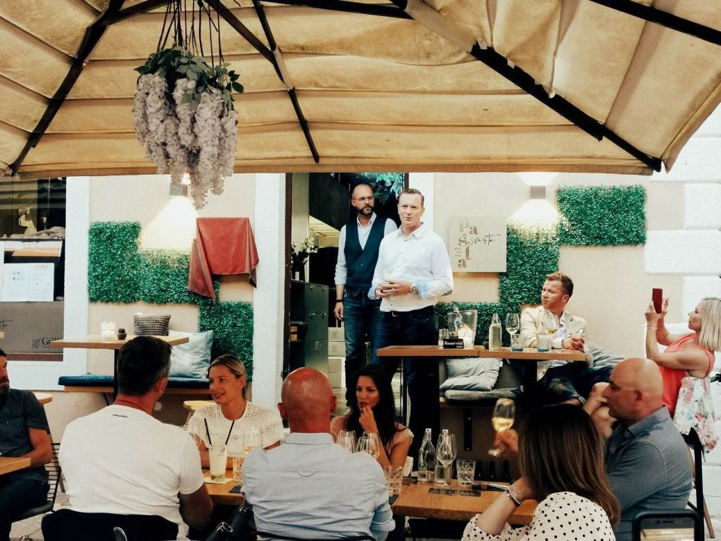 „I tako se rodila ideja o Griffin Ambassadoru kao lancu restorana u kojima se poslužuju sva Griffin pjenušava i mirna vina“ – rekao nam je Krešimir dok prati posljednje pripreme za večeru od pet sljedova koju je pripremio kreativni dvojac chefova Pašte, Marko Valković i Goran Ružić.