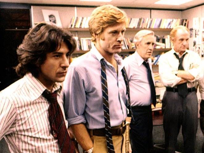 Ovaj klasik iz 1976. godine na vrhu je popisa svih ljubitelja povijesno-političkih filmova. Glavna priča vrti se oko Boba Woodwarda i Carla Bernsteina, novinara Washington Posta koji su otkrili detalje skandala Watergate, koji su u konačnici doveli do ostavke predsjednika Nixona. Film se temelji na istinitoj priči, a postigao je kultni status zbog svoje kulturne važnosti te je 2010. godine pohranjen u Državni filmski registar SAD-a.