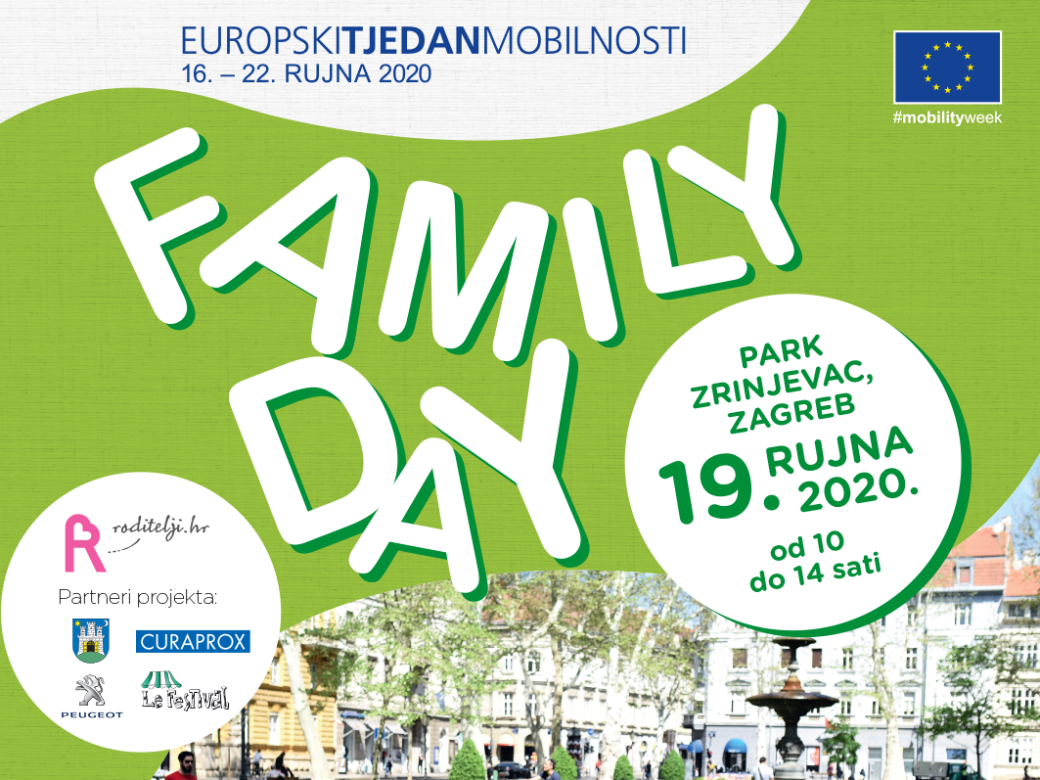 Europski tjedan mobilnosti održava se svake godine od 16. do 22. rujna. U sklopu ove europske inicijative koja potiče male i velike gradove na uvođenje i promicanje održivih prijevoznih sredstava te ih motivira na vježbanje i kretanje, održat će se ove godine po prvi puta i Family Day - čiji je cilj povezati obitelj te im pružiti ideje i savjete, kao i motivaciju za što kvalitetnije druženje u prirodi. Jer, super je kretati se, baviti se sportom i živjeti zdravo, imati odgovornost prema vlastitom tijelu, dobrom zdravlju i pravilnoj prehrani, kao i brinuti se o planeti Zemlji. Na Zrinjevcu vas, osim edukativnog programa posvećenog ekologiji, očekuje i bogat zabavni sadržaj uz nastup dječjih zborova kao i plesni program i predstave za djecu.