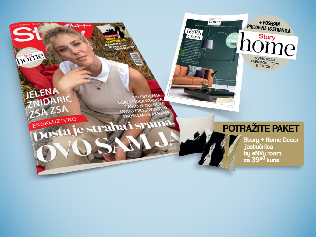 Ovoga tjedna u prodaji je lifestyle tjednik Story koji na 16. stranica donosi prilog Story home u sklopu kojega možete pronaći inspiracije, trendove tips & tricks savijete za uređenje i još mnogo dobrih ideja. Za sve koji žele i dizajnerski potpis u vašem domu, u prodaji je paket Story home decor s jastučnicama by eNVy room za samo 39,90 kuna.