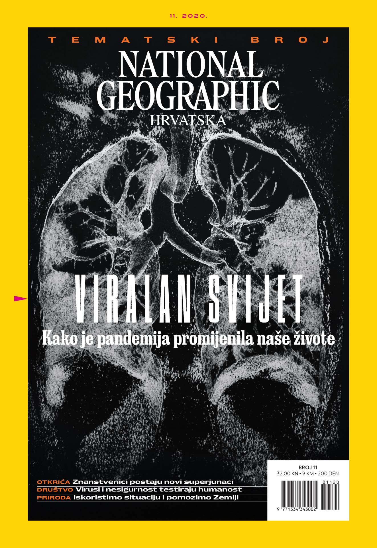 Još nismo punoljetni – 10. studenoga, kad ovaj broj dolazi na kioske, National Geographic Hrvatska slavi svoj rođendan. Krenuli smo 10. studenoga 2003. s preslatkim kinkadžuom na naslovnici, a evo nas sada na 17. rođendanskom slavlju s apokaliptičkom naslovnicom tematskog broja posvećenog pandemiji koronavirusa. Zbog epidemioloških mjera nema grandiozne proslave rođendana poput splitske proslave obljetnice Hajduka koja je,