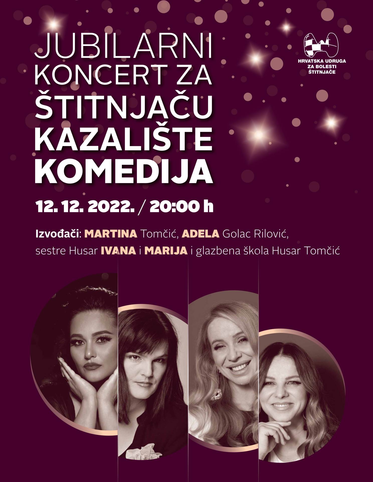 Jubilarni koncert povodom 15. godišnjice djelovanja Hrvatske udruge za bolesti štitnjače održat će se 12.12.2022. u 20 sati, u kazalištu Komedija.