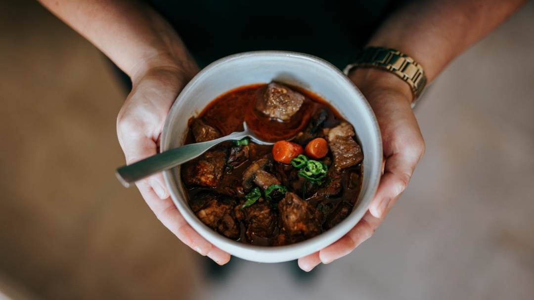 Ručak: Gulaš s crvenim mesom, kruh od heljde, pir kao prilog