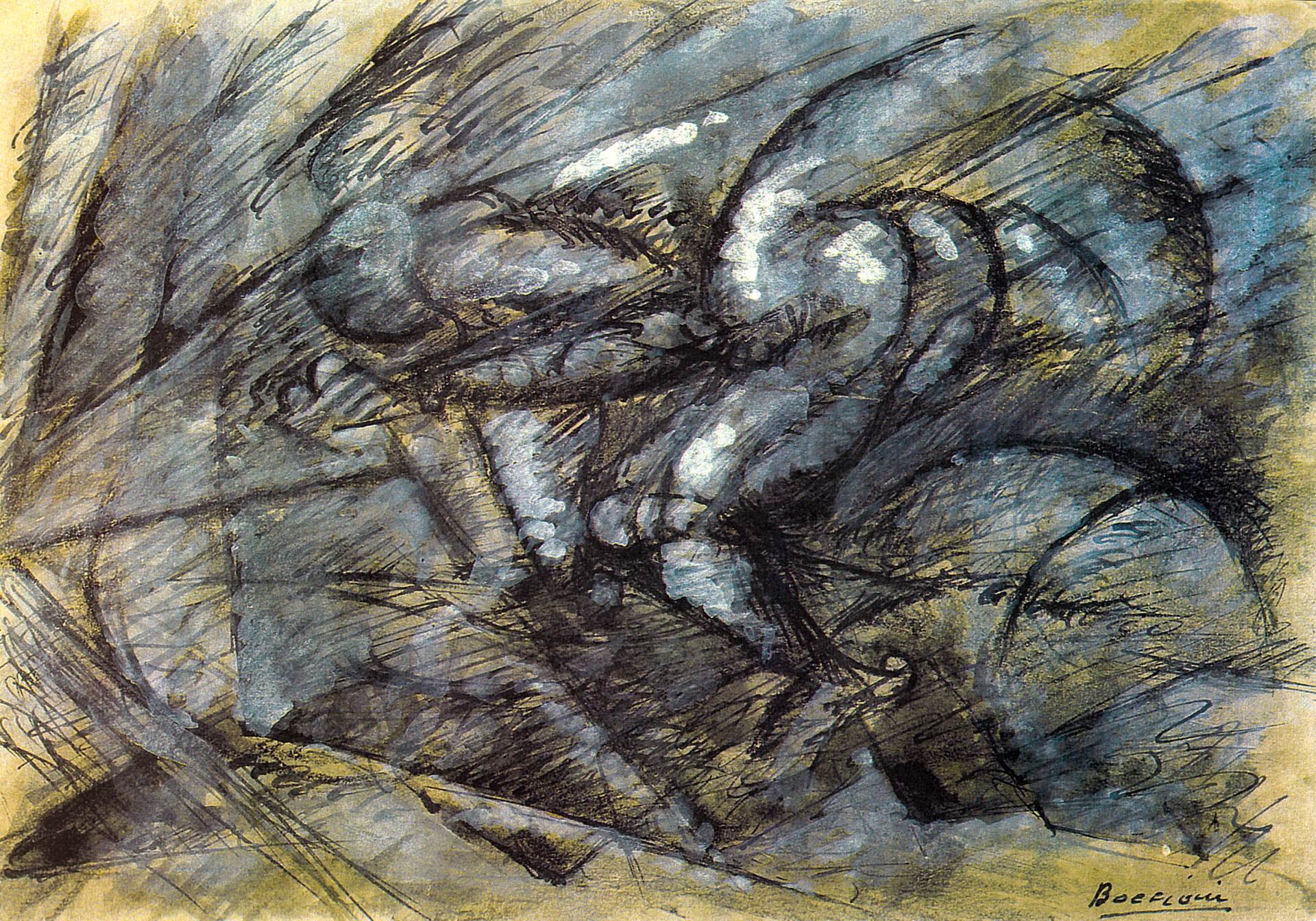 Nadahnuti pokretom i brzinom, tehnološkim napretkom na početku stoljeća, futuristi radikalno zahtijevaju prekid s prošlosti i tradicijama koje su već dugo umarale talijansku umjetnost. Manifesti, javna djelovanja, nastupi pred publikom i zvučni performansi, aktivnosti su kojima su članovi pokreta protresli društvo koje se uskoro našlo u vrtlozima svjetskih sukoba.