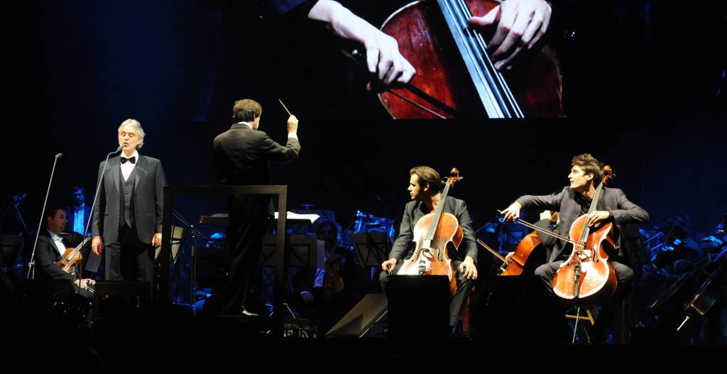 Brojna oduševljena publika slavnog je talijanskog tenora i njegove goste ispratila stojećim ovacijama uz čak četiri bisa; uz izvedbe Quizàs, quizàs, quizàs, Vivo per lei,Nessun dorm neponovljivom Con te partirò. Slavni talijanski tenor koji je prodao više od 85 miljuna albuma, više od ijednog drugog opernog pjevača u povijesti, u subotu je na zagrebačkom koncertu predstavio i svoj najnoviji album 'Opera: The Ultimate Collection' koji se već tjednima nalazi u samom vrhu Billboardovoj ljestvici klasičnih album. Vidno oduševljeni Andrea Bocelli brojnoj zagrebačkoj publici poručio je; - "Divno je opet biti u Zagrebujer ste publika koja odašilje pozitivnu energiju u kojoj uživam. Hvala vam". Na poziv Andree Bocellija, na pozornici su mu se pridružili i svjetski popularni dvojac – violončelisti Stjepan Hauser i Luka Šulić, poznatiji kao 2Cellos. Virtuozi na violončelu, koji su oduševili cijeli svijet svojim obradama, razveselili su sve prisutne svojom suradnjom s još jednom velikom glazbenom zvijezdom te izjavili "Andrea pjeva svojim neponovljivim glasom, a mi preko instrumenata - a to onda daje jedan divan spoj".