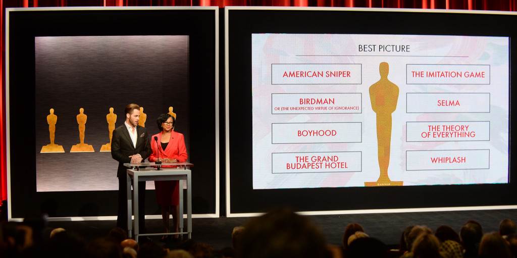 Ovogodišnje nominacije za najprestižniju filmsku nagradu, Oscar, predstavili su glumac Chris Pine, predsjednica Akademije Cheryl Boone Isaacs te redatelji Alfonso Cuarón i J.J. Abrams. Dodjela nagrada Oscar, 87. po redu, održat će se 22. veljače, a vodit će ju glumac Neil Patrick Harris. Po devet nominacija dobili su filmovi 'Hotel Grand Budapest' te 'Birdman', 'Igra oponašanja' osvojila je osam nominacija, film 'Odrastanje' šest, a 'Ritam ludila' i 'Foxcatcher' po pet.Nominirani su:Najbolji film: American Sniper Birdman Odrastanje (Boyhood) Hotel Grand Budapest Igra oponašanja (The Imitation Game) Selma Teorija svega (The Theory of Everything) Whiplash Najbolji glavni glumac: Steve Carell (Foxcatcher) Bradley Cooper (American Sniper) Benedict Cumberbatch (Igra oponašanja) Eddie Redmayne (Teorija svega) Michael Keaton (Birdman) Najbolja glavna glumica: Marion Cotillard (Dva dana, jedna noć) Felicity Jones (Teorija svega) Julianne Moore (Still Alice) Rosamund Pike (Nestala) Reese Witherspoon (Wild) Najbolji sporedni glumac: Robert Duval (Sudac) Ethan Hawke (Odrastanje) Edward Northon (Birdman) Mark Duffalo (Foxcatcher) J.K.Simmons (Whiplash) Najbolja sporedna glumica: Patricia Arquette (Odrastanje) Laura Dern (Wild) Keira Knightly (Igra oponašanja) Emma Stone (Birdman) Meryl Streep (U šumi) Sve nominacije možete pročitati ovdje! Foto: Profimedia
