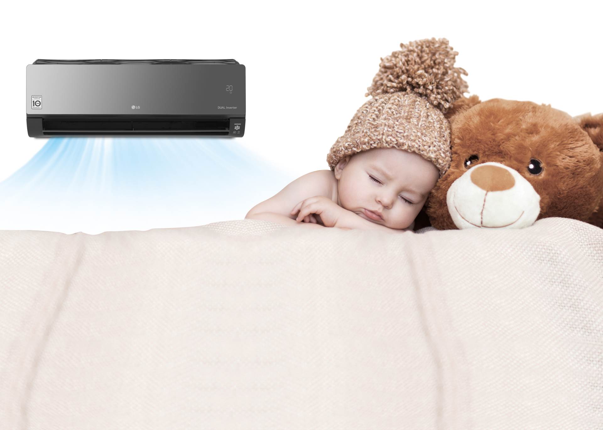 Za učinkovito postizanje optimalne temperature ureda ili bilo kojeg zatvorenog prostora, LG nudi novu generaciju klima-uređaja iz serije Dual COOL koje karakterizira briga za zdravlje korisnika, ušteda energije, tihi rad te praktično upravljanje i dijagnostika putem mobilnih uređaja. Bez obzira radi li se o modelu ARTCOOL, Deluxe, Sirius ili Standard, upravljanje temperaturom i kvalitetom zraka u prostoru je jednostavno, ugodno i učinkovito. Uz to, zahvaljujući LG-evom ionizatoru, steriliziraju bakteriju E.coli u preko 99,9% slučajeva, što osigurava zdravo i čisto okruženje povoljno za rad. U konačnici, LG-evi klima-uređaji ističu se i po iznimno kvalitetnom kompresoru Dual Inverter Compressor™ čiju trajnost i pouzdanost potvrđuje desetogodišnje jamstvo.