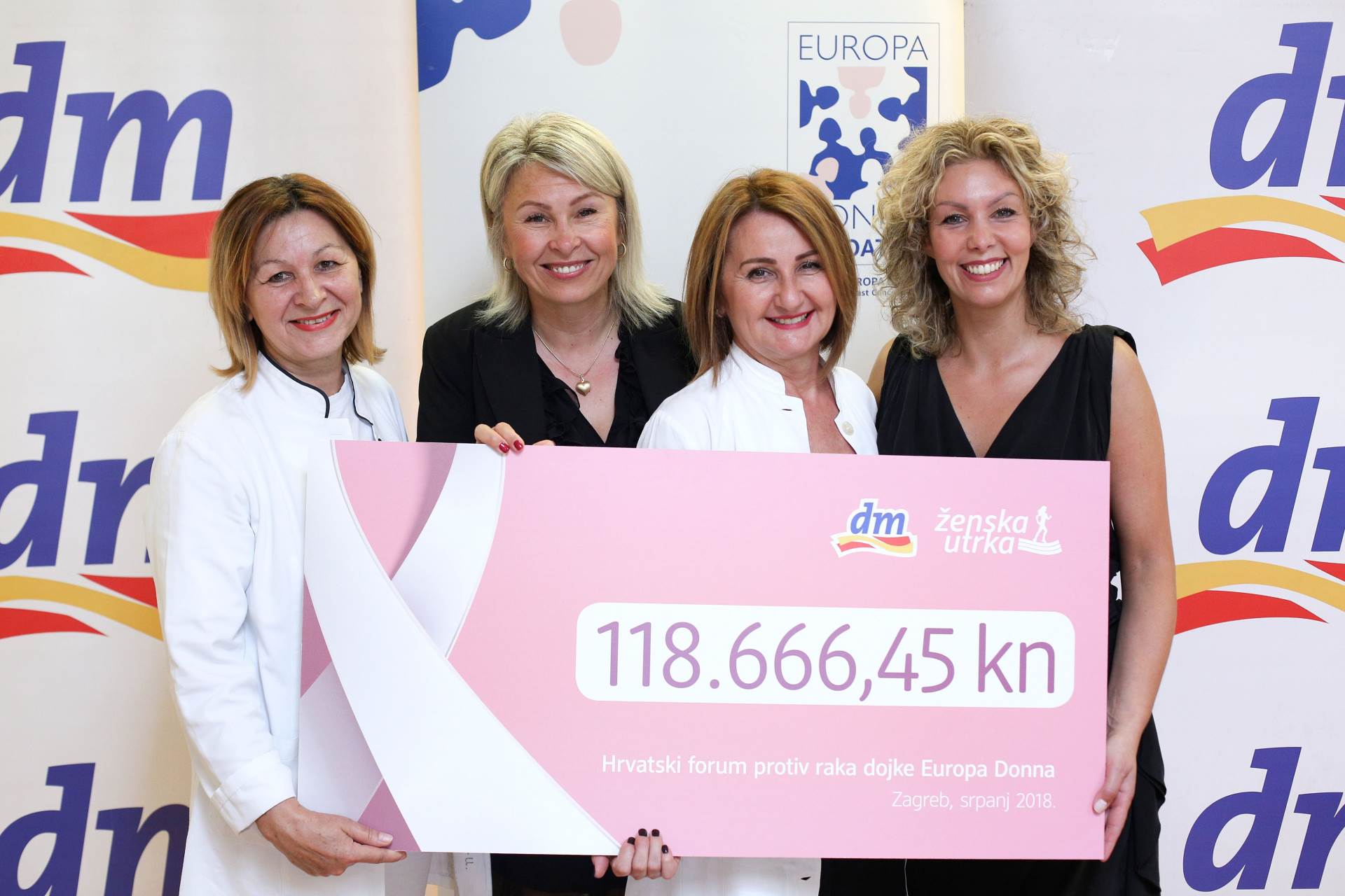 Suradnja Europa Donne Hrvatska i dm-a započela je u lipnju 2017. godine u sklopu šeste dm ženske utrke kada su tijekom deset dana uoči te na sam dan utrke građani prikupili više od 47.800 kuna za udrugu Europa Donna Hrvatska.