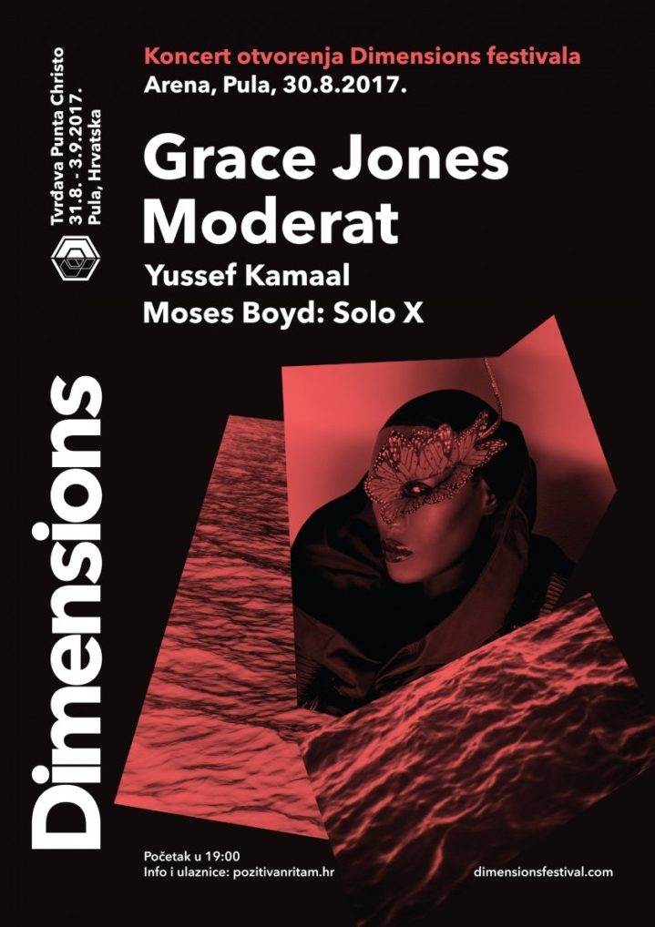 Nakon prošlogodišnjeg sjajnog koncerta Massive Attacka pred osam tisuća ljudi u originalnom ambijentu pulske Arene, Dimensions festival sprema još jedno monumentalno izdanje. Šesti Dimensions festival otvorit će Grace Jones, intrigantna ikona koja definira glazbu, modu i umjetnost već 30 godina, a kojoj će ovo biti prvi nastup u Hrvatskoj. Poznata po svojoj androgenoj pojavi, jednako kao i po svojoj glazbi, 68-godišnja Grace Jones i dalje je inspiracija mnogim umjetnicima. Nakon 19 godina pauze vratila se 2009. sa zapaženim albumom Hurricane. Od tada nije prestala nastupati, a na pozornici je jednako originalna i energična kao i na početku karijere. Jednako tako poznat po svojim nastupima je elektronski super-bend Moderat, trojac kojeg čine članovi Modeselektora i Apparat, predvodnici berlinske scene. Na tragu prošlogodišnjeg koncerta u Areni kojeg je otvorio trenutno najcjenjeniji jazz glazbenik Kamasi Washington bit će i nastup eksperimentalnog jazz benda Yussef Kammaal te bubnjara i kompozitora Mosesa Boyda. Ulaznice super ranograblice za koncerta otvorenja su rasprodane, a ulaznice s noom cijenom od 325 kuna se mogu naći na ovom linku. Dimensions tim i ove godine na tvrđavi sprema kvalitetan program kojeg čini kombinacija snova; od lokalnih legendi do međunarodno cijenjenih umjetnika. U svom šestom izdanju Dimensions će tako po prvi put ugostiti jednog od utemeljitelja techno glazbe, Jeffa Millsa. Još jedno kultno američko techno američko ime, kralj glazbene selekcije Theo Parrish, u Pulu donosi zvuk Chicaga. Stalni gost Berghain kluba, Marcel Dettmann, vraća se u svom poznatom techno stilu. Floating Points nastupa čak dva puta kroz festival; s posebnim live showom koji je putovanje kroz njegovu produkciju te s eklektičnim i ekspanzivnim DJ setom. Bez sumnje, jedan od vrhunaca festivala bit će nastup slavnog funk benda iz 70-tih, Cymande, koji će u punom sastavu svirati klasike. Tu je i multi-instrumentalist i gospodar funka Shuggie Otis, te zagonetni reper iz Gane - Ata Kak. Na mračnijem kraju zvučnohg spektra tu je techno zvijezda Nine Kraviz i nova nada Helene Hauff, koja je zacementirala svoje mjesto kao jedna od predvodnika underground scene. Progresivne setove spremaju Dan Snaith poznat kao Caribou i Daphni, te Joy Orbison. Foto: Promo