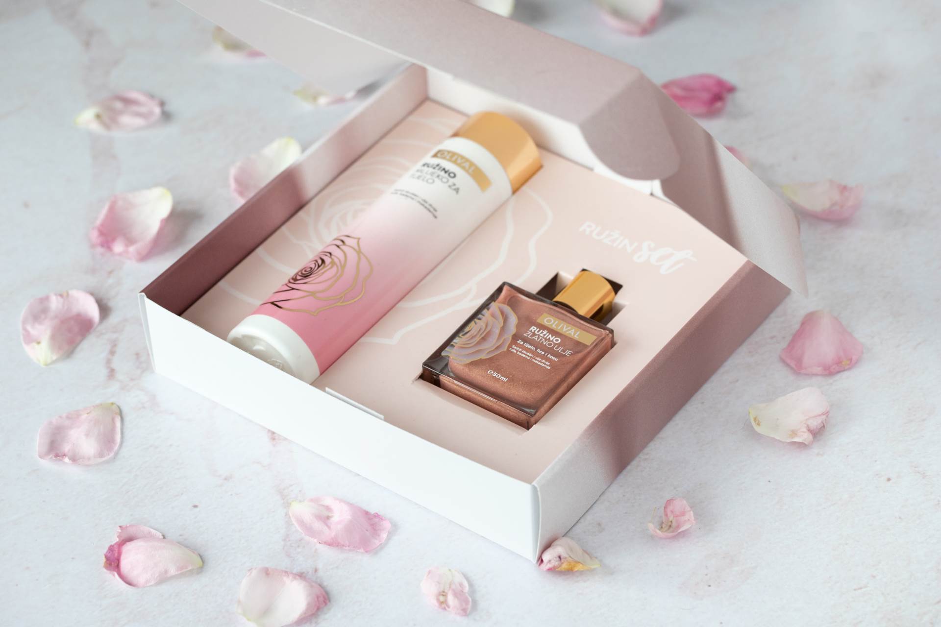 Baš poput Pariza i poklon set zavodljivog, no ne previše intenzivnog mirisa ruže je 'uvijek dobra ideja'. Olival ove godine prvi put predstavlja Ružin set za božićne blagdane, a upravo uz njega doček Nove godine mogao bi biti sjajniji i mirisniji. Ružino mlijeko za tijelo obogaćeno hranjivim prirodnim uljima dubinski će njegovati kožu u hladnim zimskim danima kad je koža izložena velikim promjenama temperature između zatvorenog i otvorenog prostora. Skvalan iz masline, te ulja divlje ruže, badema i makadamije čine ovo mlijeko brzoupijajućim, a kožu mekom, podatnom i mirisnom.