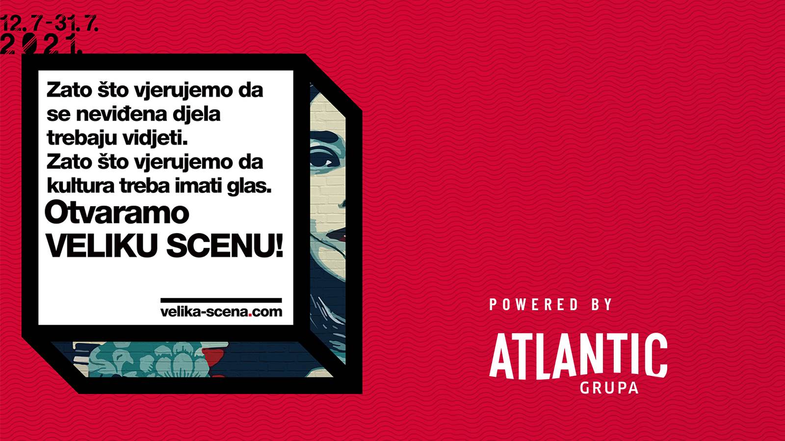 Atlantic Grupa na Sarajevo Film Festivalu (SFF) lansira novu web platformu naziva Velika Scena, koja za cilj ima promovirati talentirane i perspektivne umjetnike koji će upravo na ovoj platformi dobiti sjajne prilike za lansiranje vlastitih kreativnih priča. Velika Scena kreće iz Sarajeva, s partnerskog SFF-a i jedina je platforma ovog tipa na našim prostorima, a funkcionirat će kao mjesto motivacije i podrške, online i offline prostor gdje će se promovirati sloboda izražavanja i te mladim umjetnicima pružiti toliko potrebna vidljivost. Velika Scena nastavak je višegodišnje suradnje Atlantic Grupe i Festivala, a namjera joj je dugoročno pružiti podršku kulturi i umjetnosti kao univerzalnom jeziku.