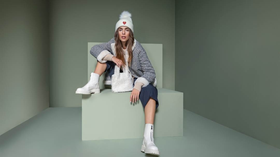 Pri pogledu na all white kombinacije poput ove odmah se veselimo prvim snježnim pahuljama! Uz bijele čizme s nježnim detaljima u smeđoj i bež boji, sve niže temperature uopće nam ne smetaju – naprotiv - jedva čekamo isprobati sve kombinacije krem trapera, bijelih i bež hlača koje ćemo nositi ispod bundi i kaputa u nježnim paletama bijele i bež boje. Ove neodoljive čizmice u kombinaciji s teddy kaputom i torbicom od istog materijala osvajaju i najzimogroznije obožavateljice tamnih i zagasitih boja!
