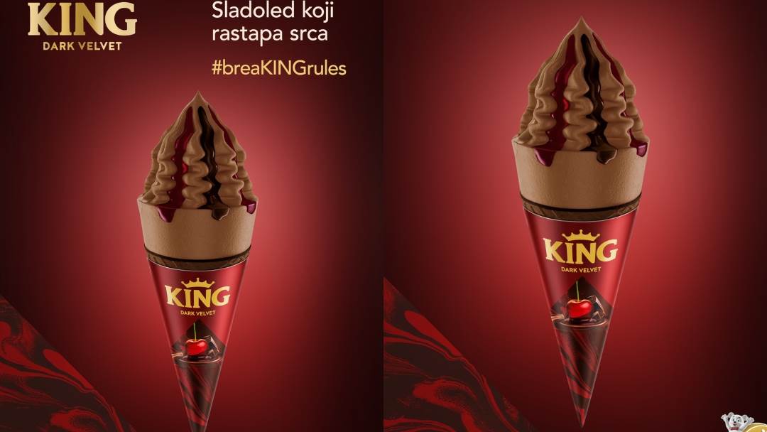 Osim atraktivne kombinacije okusa, ovaj sladoled poseban je i zbog hrskavog, tamnog korneta od čak 220ml što ga čini jednim od najvećih sladoleda unutar kategorije korneta te kao takav zasigurno predstavlja odgovor na želje i potrebe mnogobrojnih potrošača. Zahvaljujući velikom volumenu i atraktivnoj kombinaciji okusa koji se savršeno sljubljuju, King Dark Velvet idealna je poslastica za romantične trenutke u kojima će mnogi uživati u danima pred nama.