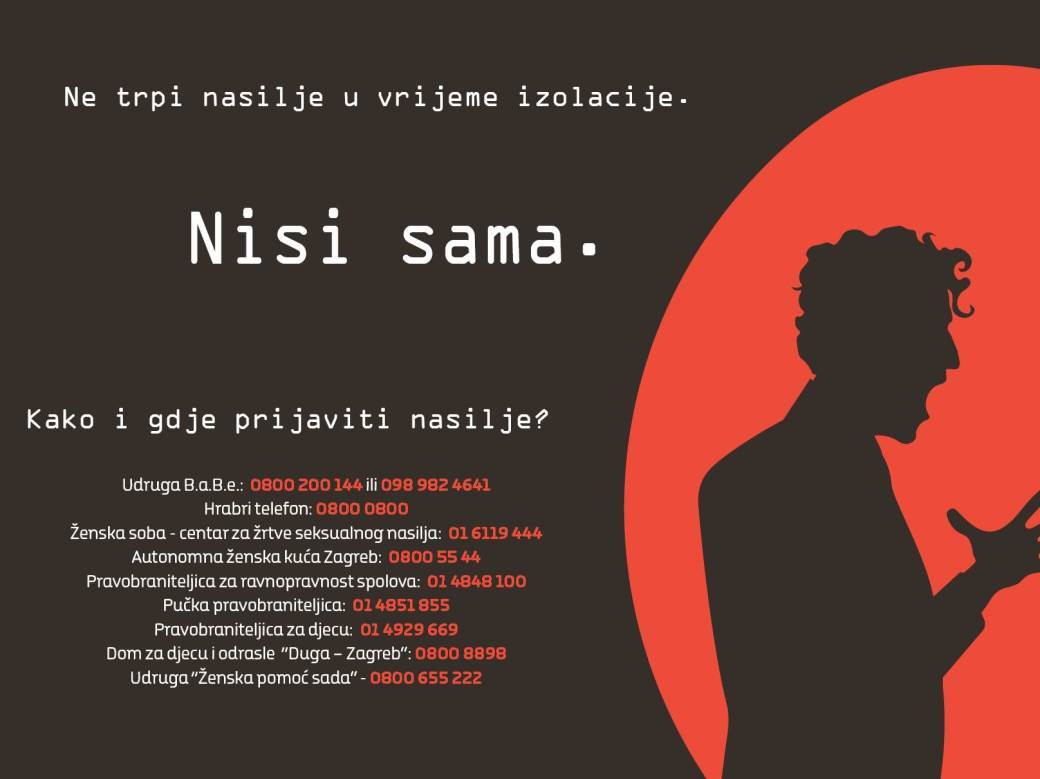 Brojne svjetske i hrvatske organizacije ističu kako se u krizi izazvanoj koronavirusom, a potom i potresom koji je pogodio Zagreb i njegovu okolicu ne smije, uz brojne novonastale probleme, zaboraviti na žrtve obiteljskog nasilja.Zbog mjera izolacije i socijalnog distanciranja, žrtve nasilja stavljene su u iznimno težak položaj i ograničeno im je ili u potpunosti onemogućeno pravo na zaštitu.
