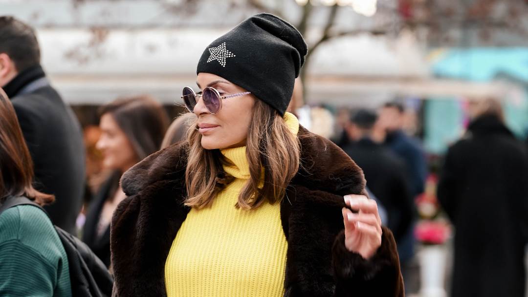 Ana je centrom grada za Badnjak prošetala u kratkoj, žutoj vesta haljini preko koje je stavila smeđu bundu, a look je upotpunila crnim, visokim čizmama na petu i vezanje.