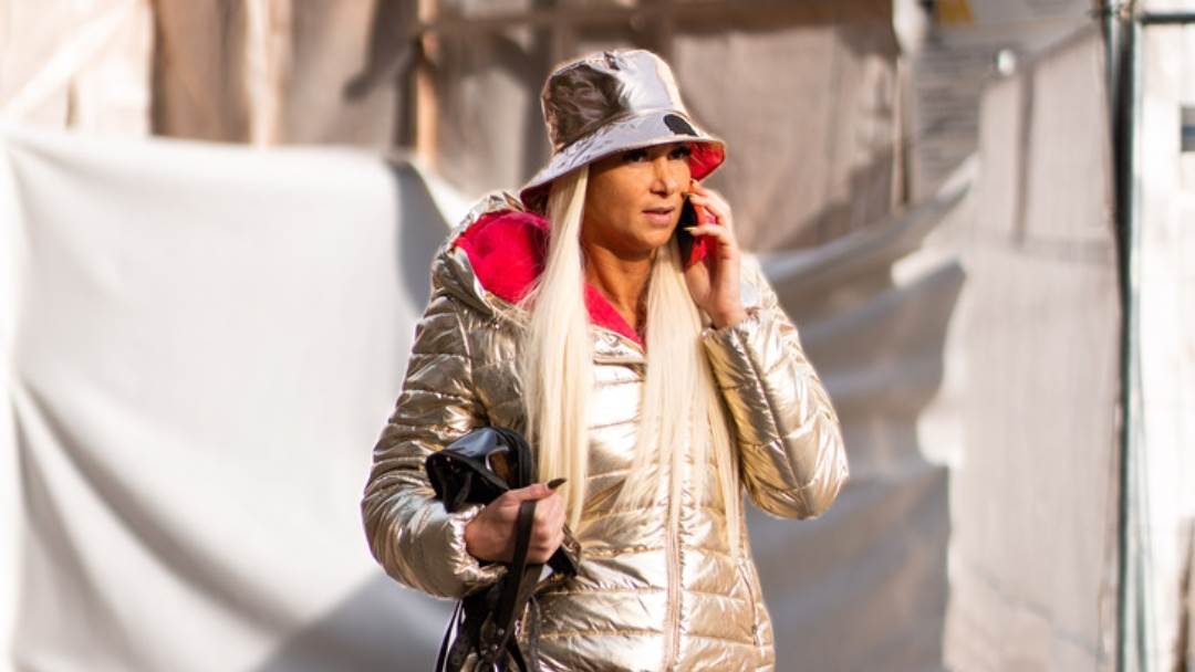 Dama s dugom, ravnom platinasto plavom kosom sa srebrnim metalik šeširom i u jakni s ružičastom podstavom privukla je najviše pažnje na Cvjetnom trgu.