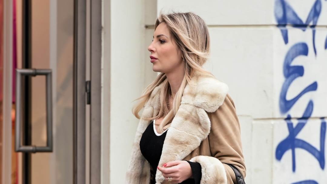 Atraktivna plavuša iskombinirala ju je s trapericama, crnom majicom te Louis Vuitton tenisicama i bež kaputom od brušene kože s krznenim detaljima.