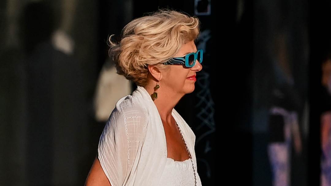 Centrom je grada prošetala u asimetričnoj, bijeloj haljinici iznad koje je kombinirala bijeli šal, mini crnu Louis Vuitton torbicu i bež pletene sandalice. Od nakita je nosila narukvice, viseće naušnice i plave naočale.