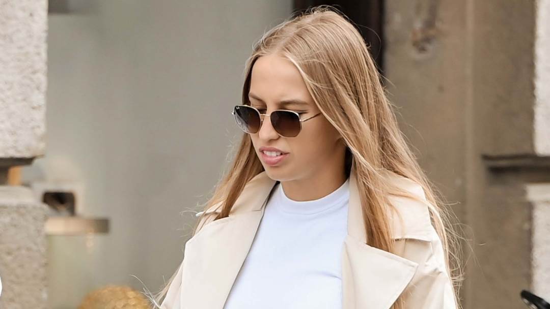 Klasični dugi bež baloner kombinirala je sa trendi suknjom nešto tamnije boje s prorezom s prednje strane uz koju je uparila kraći bijeli top.