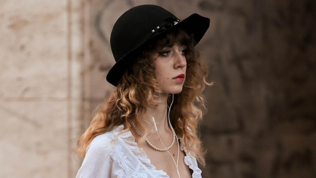 Nosila je dugu crnu suknju i bijelu košulju s volanima i cvjetnim detaljima, a na glavi je imala crni šešir. Sve je nadopunila crnim remenom i cipelama s visokom potpeticom, a oko vrata je imala bisernu ogrlicu. Posebno simpatičan detalj bile su bijele čarape s volančićima.