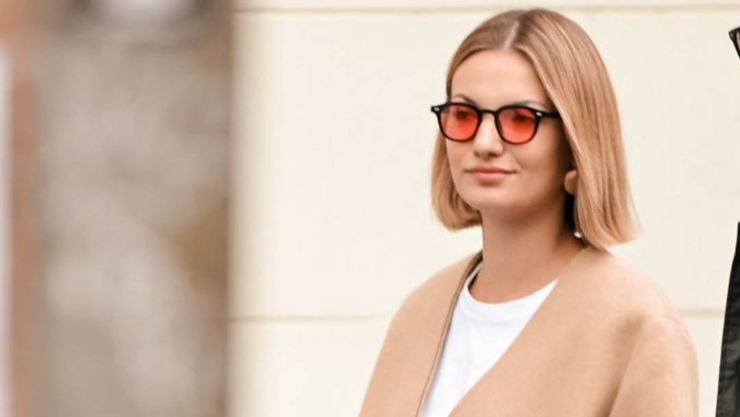Nosila je karirane hlače u pastelnim bojama koje je iskombinirala s vunenom jaknom bež boje i šireg kroja ispod kojeg je nosila jednostavnu bijelu majicu. Kombinaciju je ‘podigla’ cipelama s visokom potpeticom i sunčanim naočalama s crvenkastim staklima.