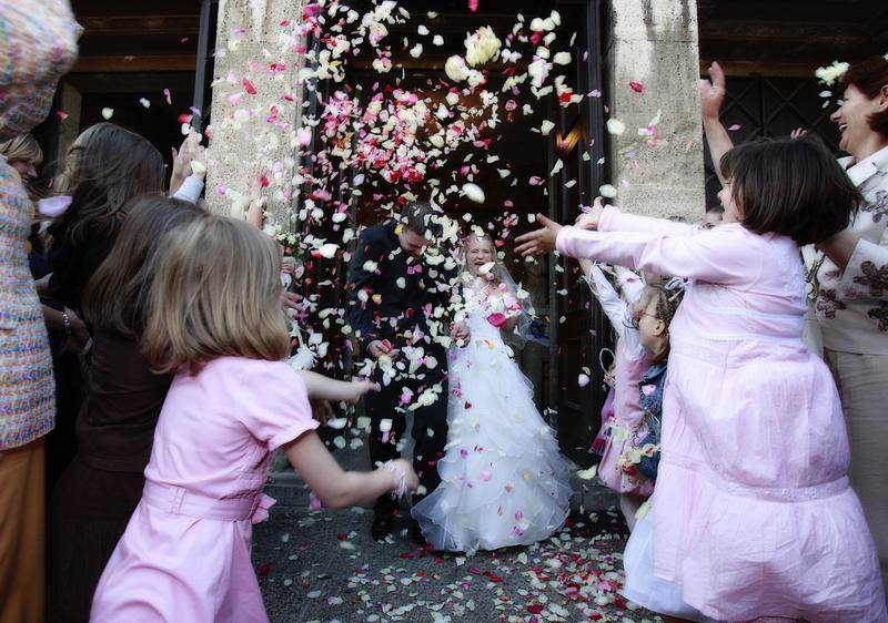 Ovaj je običaj poznat od davnina i popularan širom svijeta. Od najmlađih do najstarijih uzvanika svi mogu sudjelovati u ovom darivanju vjenčanog para nakon ceremonije. Ovaj običaj podrazumijeva plodnost njihovog daljnjeg zajedničkog života. Diljem zemaljske kugle brojni su i različiti običaji čime se mladenci zasipavaju, pa tako osim latica i riže još se baca pšenica, simbol darežljivosti, ušećereni bademi koji svojim slatkim okusom opisuju okus braka.