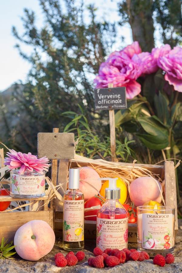 Zamislite bajkovito mjesto u kojem se miješaju mirisi voća, povrća, začina i predivnih cvjetnih buketa stvarajući nove arome. Zatvorite oči na tren i prepustite se zavodljivim mirisima ljeta. Čaroliju ljeta i ljepotu i šarm provansalske tržnice DURANCE je utkao u novu ljetnu kolekciju donoseći svježinu elegantnih voćnih mirisa. Šareni, svježi i slasni – ljetna DURANCE kolekcija predstavlja tri nova mirisa koja će probuditi sva vaša osjetila. Neodoljivo sočan miris bijele nektarine obogaćen je blagom notom breskve i marelice dajući ovom voćnom mirisu profinjenu notu. Nježna aroma ružičaste borovnice začinjena je delikatnim božurom i crvenim mošusom donoseći miris ljeta koji se ne zaboravlja. Slastan i voćni miris dunje i jabuke ublažen je zelenom notom rabarbare tvoreći originalan i autentičan miris.