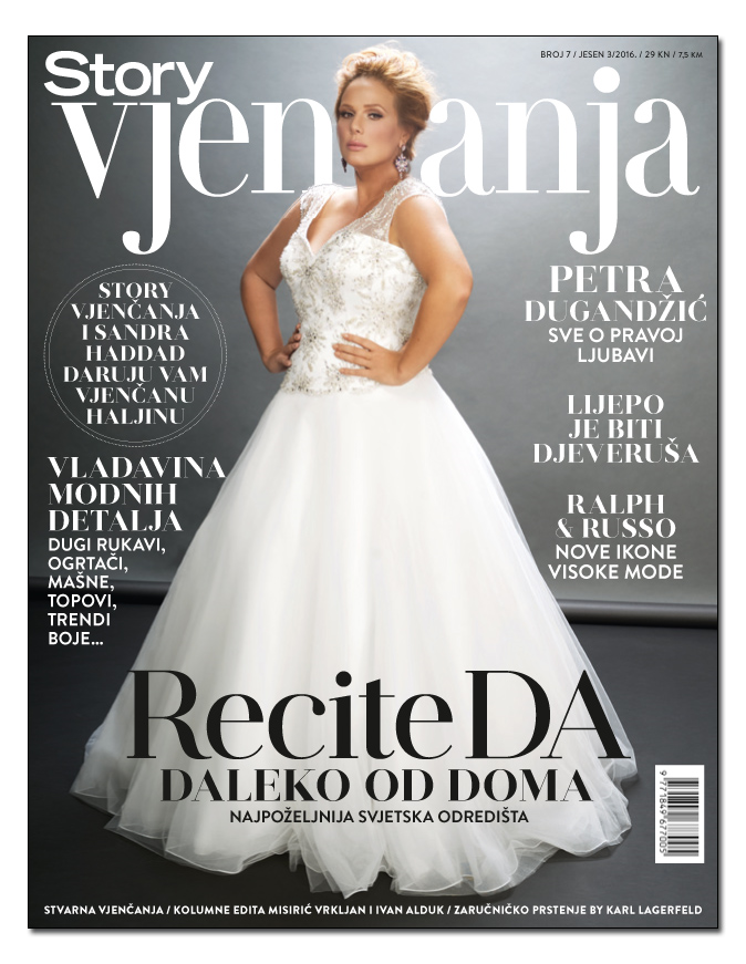 Novi broj donosi stranice protkane uvijek inspirativnom vjenčanom modom, stranice na kojima otkrivamo koji to detalji privlače pažnju mladenki diljem svijeta, predstavljamo dizajnersko ime Raplh & Russo, donosimo prilog o tome koliko je lijepo biti djeveruša te priče o inspirativnim vjenčanjima diljem svijeta. Zvijezda naslovnice i modne priče je raskošna glumica Petra Dugandžić čija je ljubav prema vjenčanjima više nego posebna!