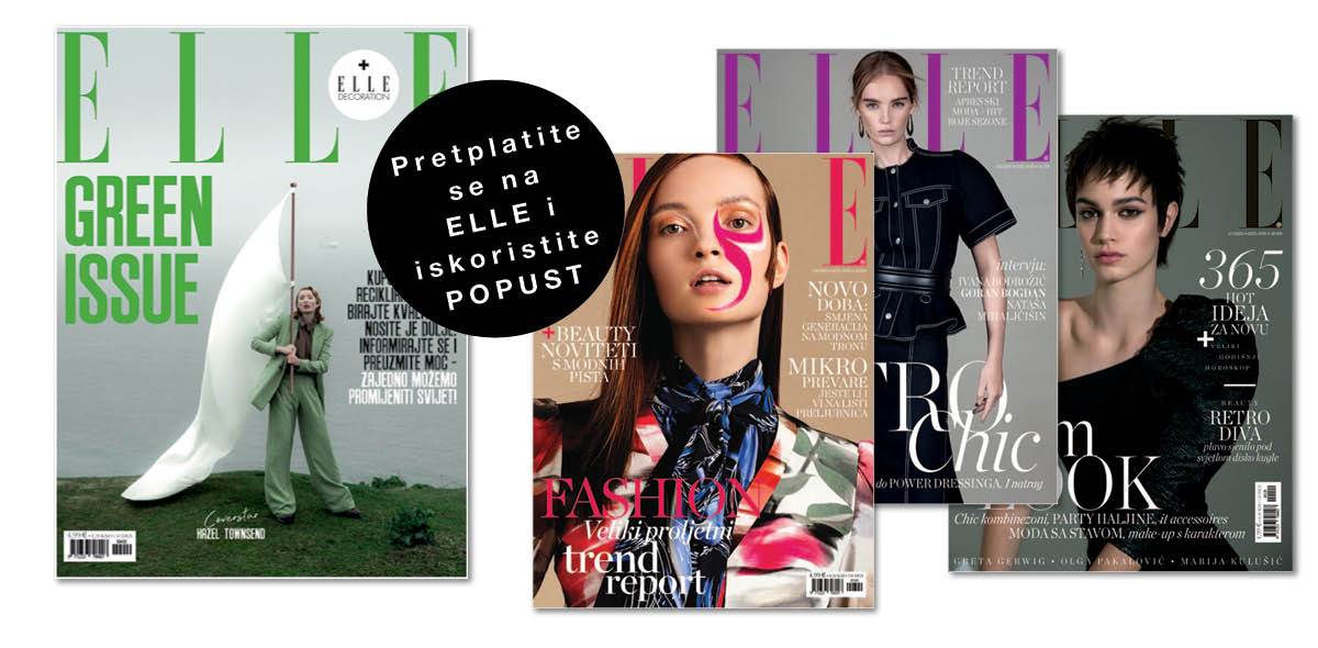 Pretplatite se stoga na Elle i iskoristite popust na svoj omiljeni časopis! Kupite jednogodišnju pretplatu i čitajte Elle 365 dana u godini. Ova ponuda uključuje 12 brojeva i iznosi 280 kuna (4 broja gratis). Polugodišnja pretplata obuhvaća 6 brojeva, a cijena joj iznosi 150 kuna (uz ostvarenih 30% popusta).