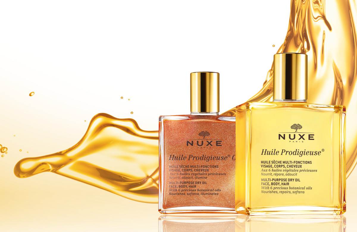 Bogatstvom dragocjenih biljnih ulja (lješnjak, makadamija, slatki badem, kamelija, gospina trava, borač) i vitamina E NUXE Huile Prodigieuse® Or Čudesno suho ulje sa zlatnim sjajem obilno hrani, njeguje i obnavlja kožu tijela i lica, te kosu, vraćajući im izgubljenu vlagu.