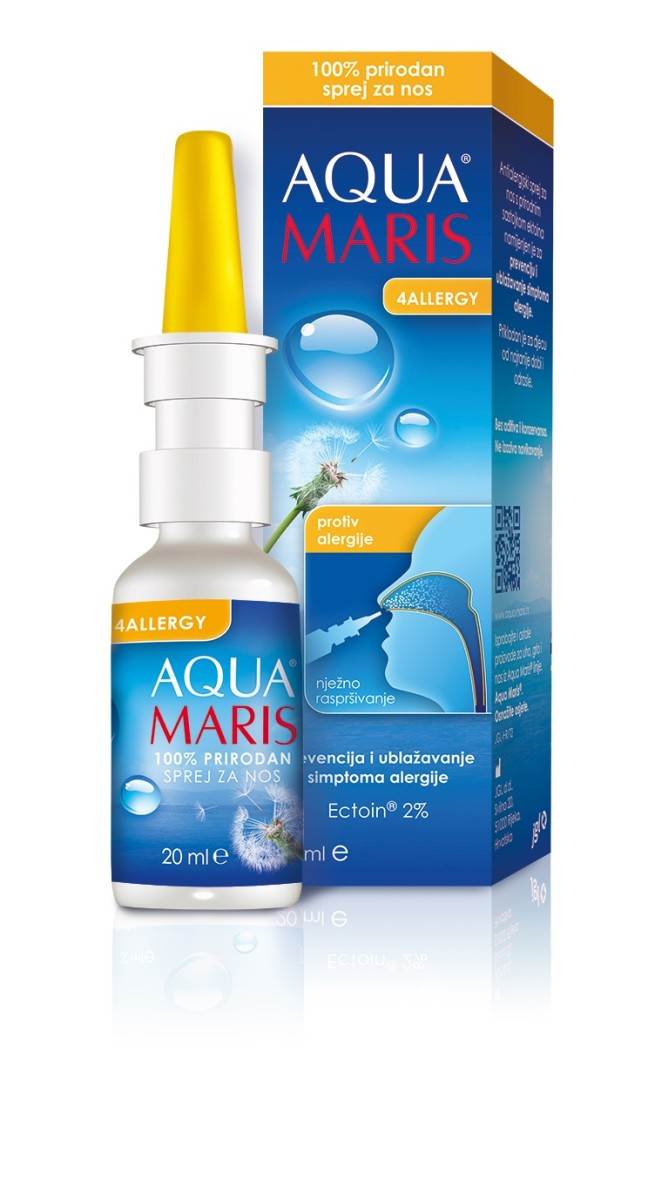 Revolucionarno rješenje iz linije Aqua Maris® kombinira snagu mora uz inovativnu supstanciju ektoin, pružajući potpunu zaštitu od neugodnih alergena i iritansa. Sprej za nos Aqua Maris 4Allergy na siguran i učinkovit način ublažava simptome alergijskog rinitisa i podupire proces regeneracije nosne sluznice.