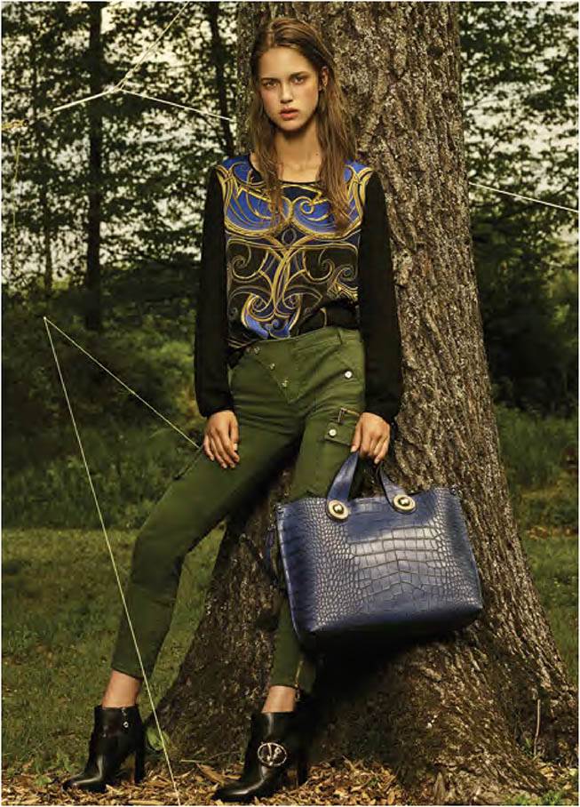 Izrazito ženstvena kolekcija Versace Jeans torbi naglašena je glamuroznim metalnim detaljima poput kopči i lanaca. Linije su pročišćene, a koža bogata i mekana na dodir za maksimalno sofisticiran dojam. Crna je dominantna nijansa kolekcije, dok razigranost i koketnost unose neodoljivi gepard i zmijski uzorak, uz pop out nijanse crvene, ljubičaste i žute. Tenisice u potpunosti odražavaju najvažnije trendove sezone. Metalik nijanse i životinjski printevi dominiraju kolekcijom tenisica i, uz čiste linije te jednostavan dizajn, transformiraju svaki street style outfit.