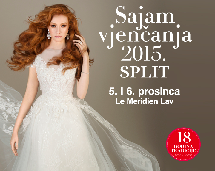 Osmi put za redom Sajam vjenčanja u Splitu otvorit će svoja vrata 5. i 6. prosinca u prekrasnom prostoru hotela Le Meridein Lav. Osim u raznovrsnoj ponudi brojnih izlagača, posjetitelji splitskog Sajma vjenčanja uživat će i u četiri modne revije etabliranih dizajnera, modnih kuća i salona vjenčanica, kao i u mnogobrojnim popratnim sadržajima poput cvjetnih radionica, degustacija torti i slastica te vrijednim nagradama i sajamskim popustima. 18 godina tradicije dokaz je uspješnosti i kvalitete projekta koji s velikom ljubavlju tvrtka Adria Media Zagreb organizira u četiri grada u Hrvatskoj: Rijeci, Splitu, Osijeku i Zagrebu. Stoga Sajam vjenčanja i ove godine obiluje kreativnim idejama, pozitivnom energijom i druženjem pa ne sumnjamo kako će biti odličan izbor budućim mladencima prilikom kreiranja vjenčane svečanosti.