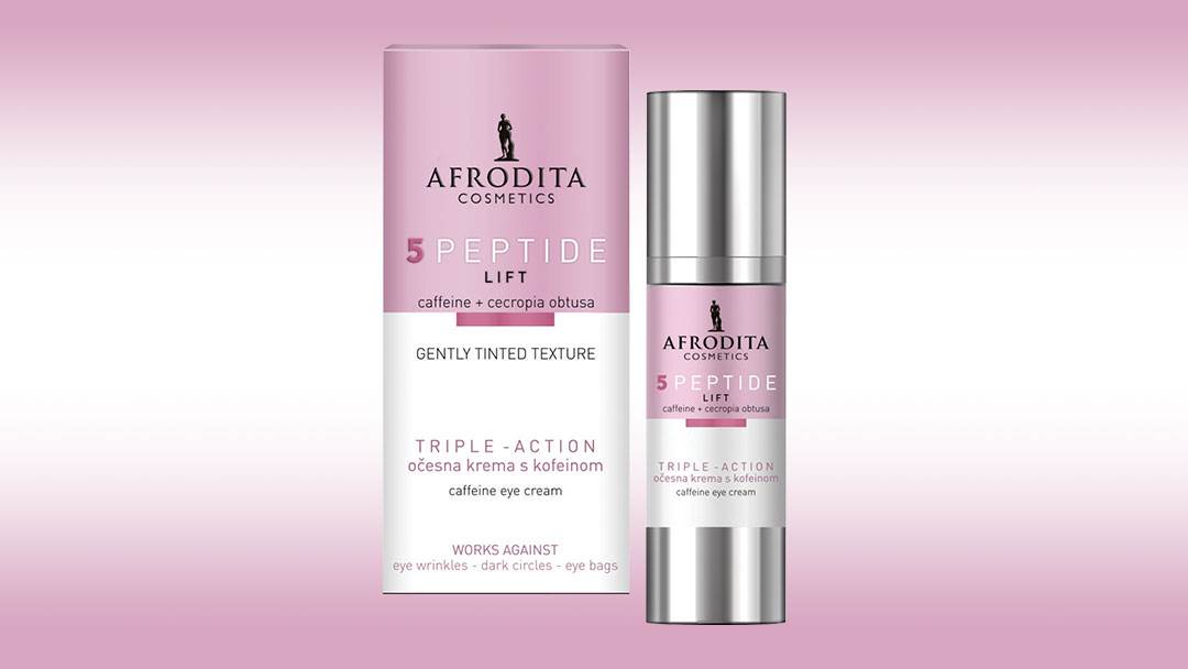 Današnji užurbani stil života i želja da sve stignemo često nas ostavlja umornima i iscrpljenima, a to se često ogleda u podočnjacima i tamnim krugovima ispod očiju. Ovo je često popraćeno i s puno sitnih bora oko očiju i umornim pogledom, a rješenje za ove probleme nudi Afrodita 5 Peptide Lift Triple-action krema za područje oko očiju s kofeinom.