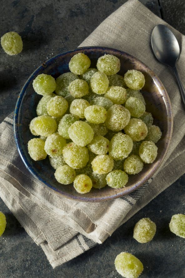 Zamislite grožđe koje je istovremeno osvježavajuće, malo slatko i prožeto prosecco okusom. To je upravo ovo grožđe, a svaki zalogaj je mala eksplozija okusa, jer tajna je da se grožđe natopi proseccom i votkom preko noći, a zatim lagano pospe šećerom i zamrzne. Rezultat? Hrskavi voćni zalogaj koji je savršen dok nazdravljate u ponoć ali i za dekoraciju stola.