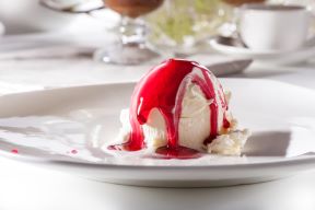 Domaći sladoled od vanilije s pekmezom od jagode